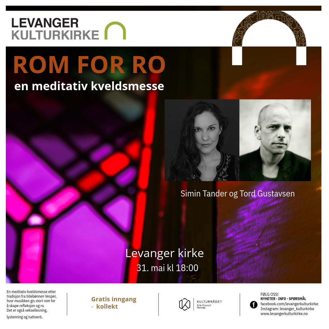 Rom for ro er en meditativ kveldsmesse etter tradisjon fra tidebønnen Vesper, der musikken gis stor rom for å skape refleksjon og ro. Vi har veksellesning, lystenning og nattverd.